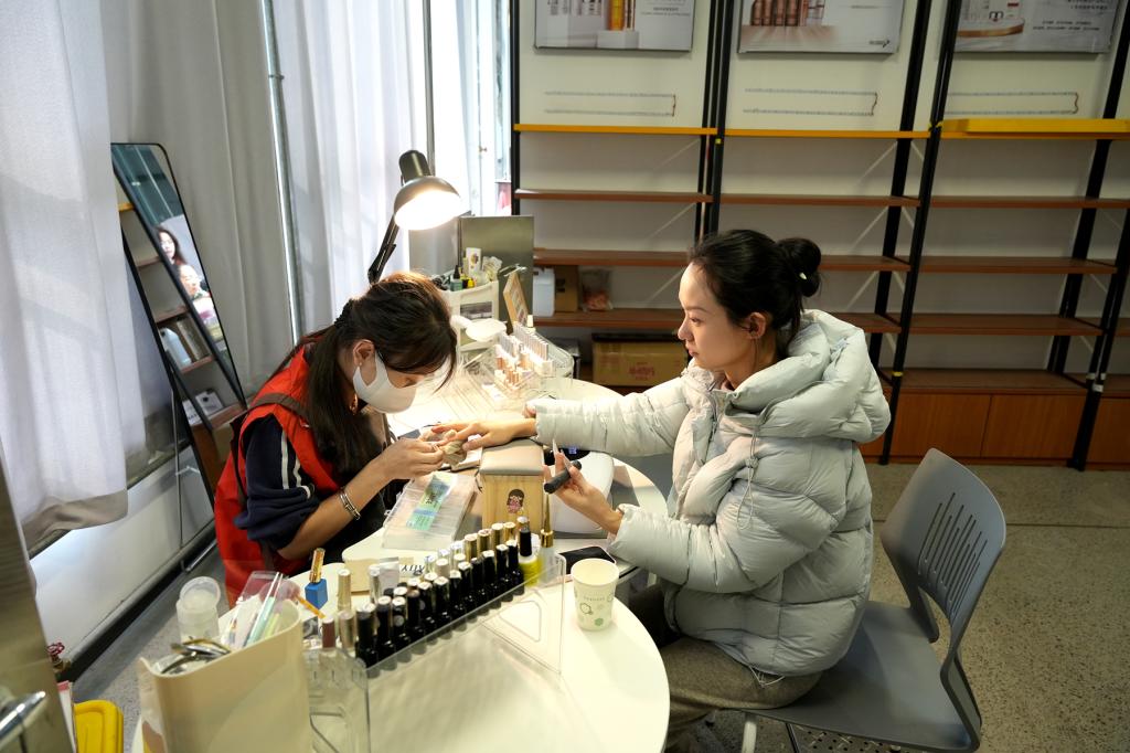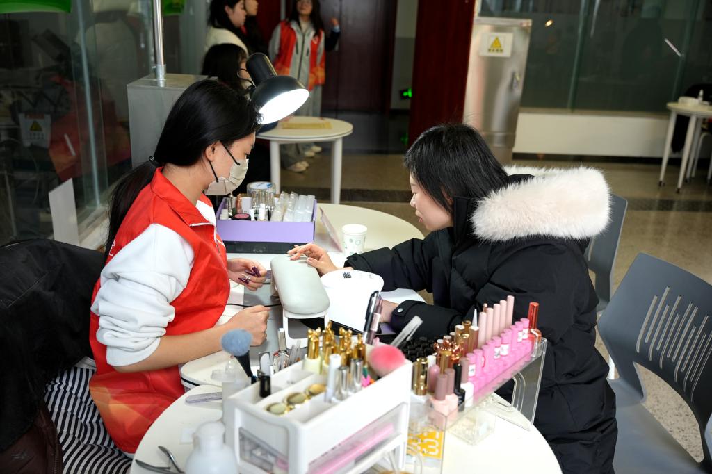 在“指尖药韵 妆点芳华”美妆活动专场,教职工们选择心仪的图案和颜色,由专业美甲师打造精致美甲,展现指尖上的独特魅力,诠释药科人的浪漫与精致。