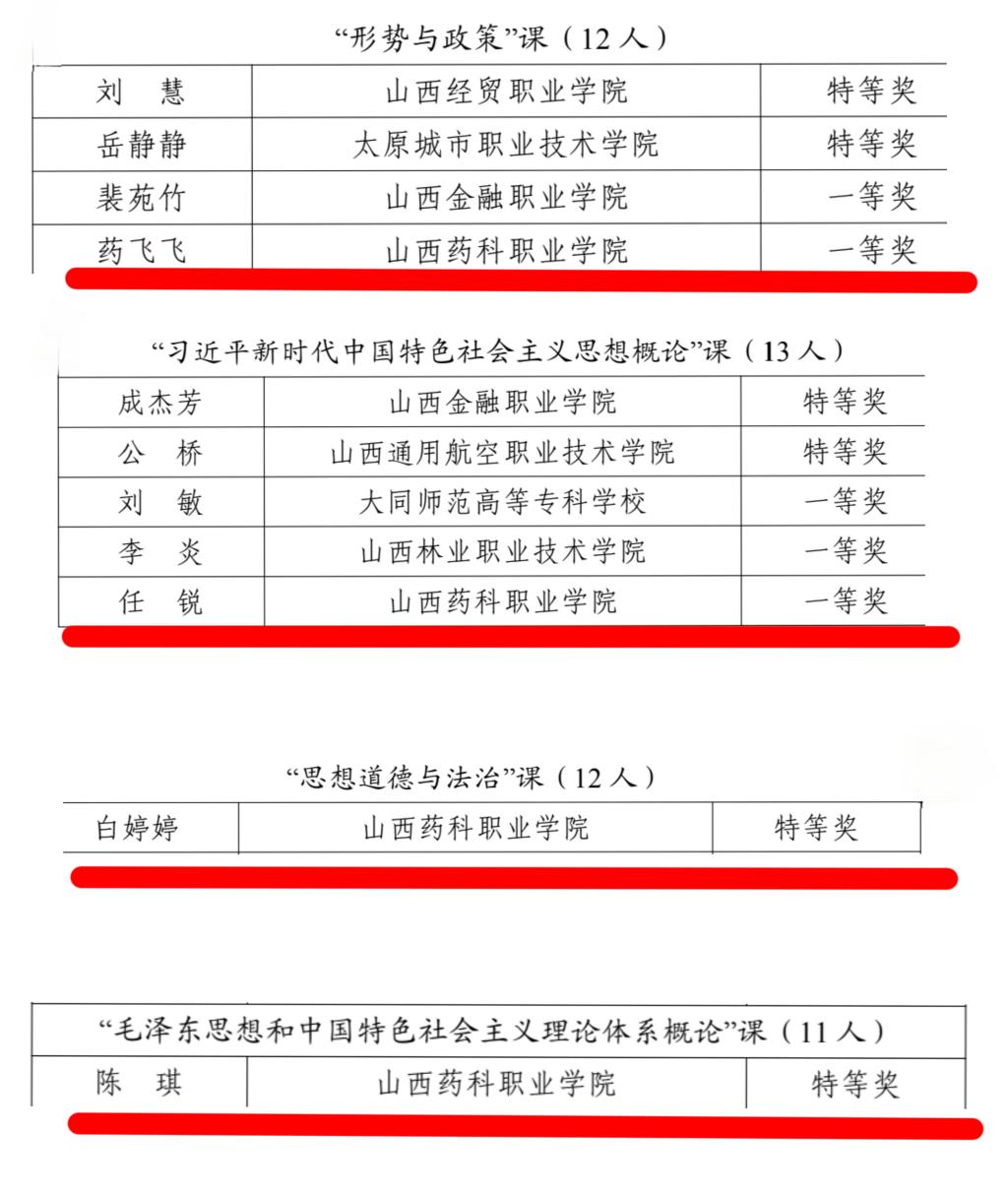 近日,第二届全省高校思想政治理论课教学展示活动圆满收官,beat365官网思政部教师表现卓越,白婷婷和陈琪分别在“思想道德与法治”及“毛泽东思想和中国特色社会主义理论体系概论” 课程中荣获特等奖,任锐和药飞飞分别在 “习近平新时代中国特色社会主义思想概论”及“形势与政策”课程中斩获一等奖。此次优异成绩的取得,刷新了beat365官网在全省思政教学领域的历史纪录,取得了beat365官网思政部教师在此赛道的最佳成绩。