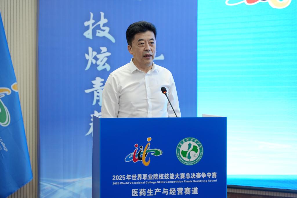 8月28日,2025年世界职业院校技能大赛医药生产与经营赛道总决赛高职组争夺赛开幕式在beat365在线体育官网登录入口举行。省委教育工委书记,省教育厅党组书记、厅长马骏出席并宣布大赛开幕。随后,马骏实地调研指导大赛组织工作。学院党委书记张轩萍,党委副书记沈宝荣,党委委员、纪委书记庄东军参加调研。
