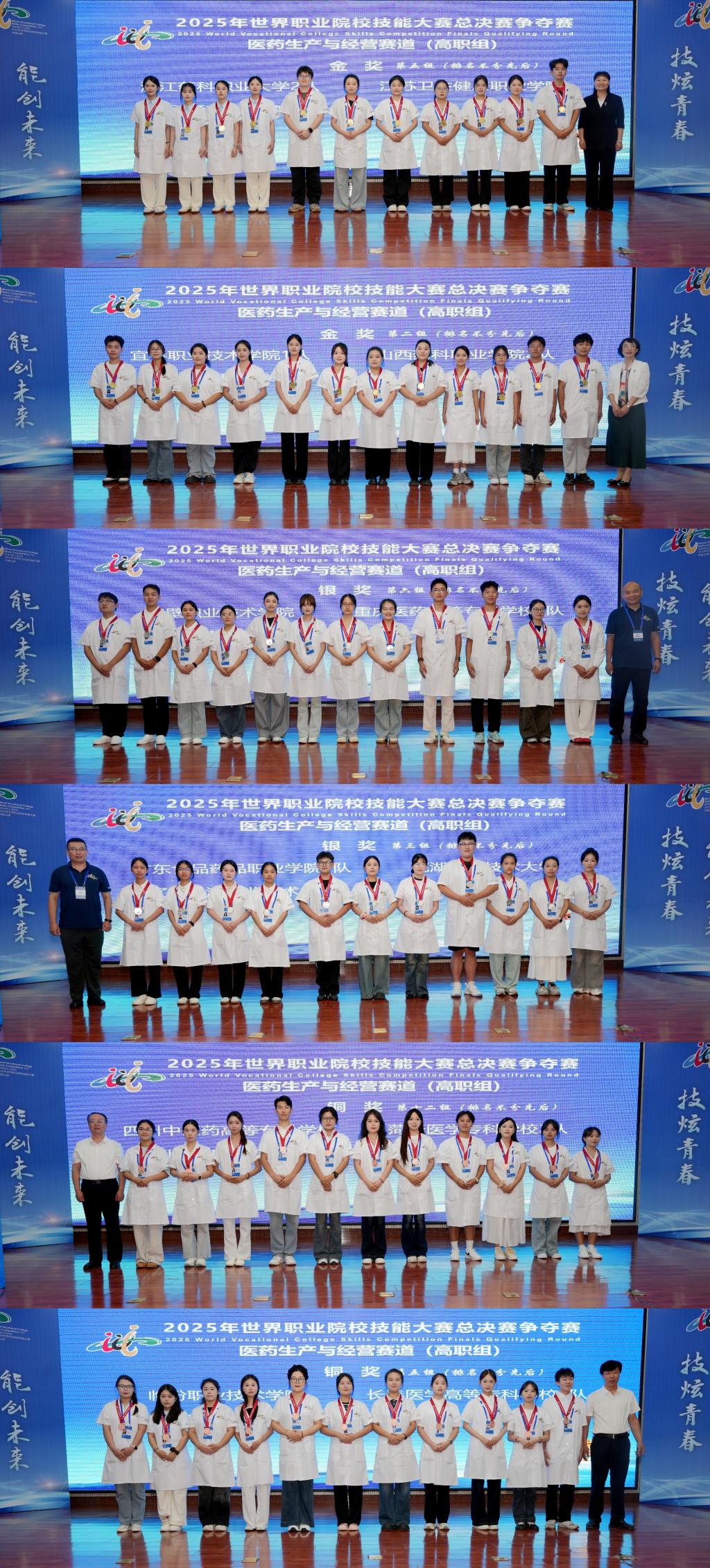9月1日,备受瞩目的2025年世界职业院校技能大赛医药生产与经营赛道总决赛争夺赛在beat365在线体育官网登录入口圆满落下帷幕。经过紧张激烈角逐,大赛最终评选出中职组金奖7个、银奖11个、铜奖18个,高职组金奖15个、银奖30个、铜奖45个。