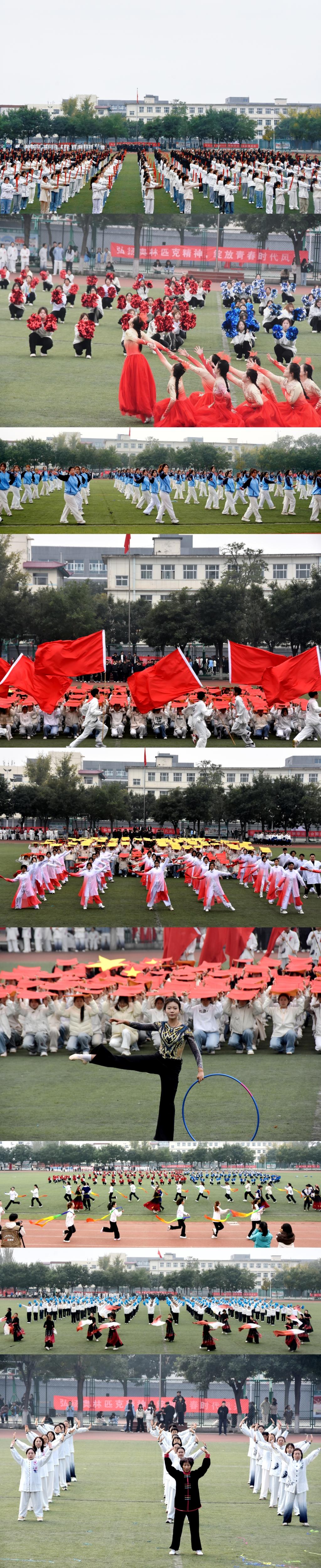 师生大型团体操表演将开幕式推向高潮。表演者们随着音乐的旋律不断变换队形,时而如波浪翻涌,时而如花朵绽放,完美演绎了青春的活力与力量的美感,赢得了全场阵阵喝彩。