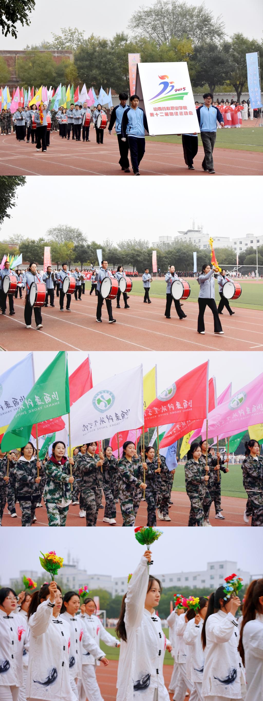 伴随着雄壮的《运动员进行曲》和激情洋溢的解说,国旗队、校徽队、会徽队、花束队、校旗队、军乐队、裁判员方队、教工方队以及各运动员代表队依次入场。他们步伐整齐、精神抖擞,以饱满的热情和昂扬的斗志接受检阅。
