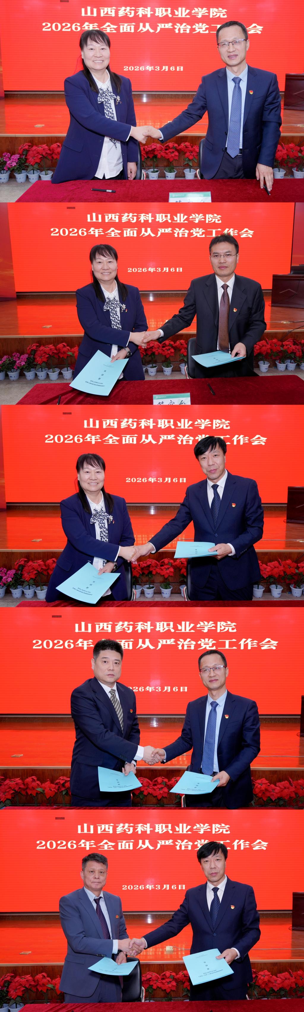 会上,教务部(教师工作部)、学生工作部、服务保障部、科研服务中心负责人结合高校领域突出问题系统整治作交流发言,药学系、食品系党总支书记就落实2026年全面从严治党主体责任作工作发言。学院党委书记与领导班子成员,领导班子成员与分管部门(单位)负责人分别签订2026年全面从严治党责任书。学院领导班子成员、各党总支书记分别就落实2026年党风廉政建设政治责任签订承诺书。