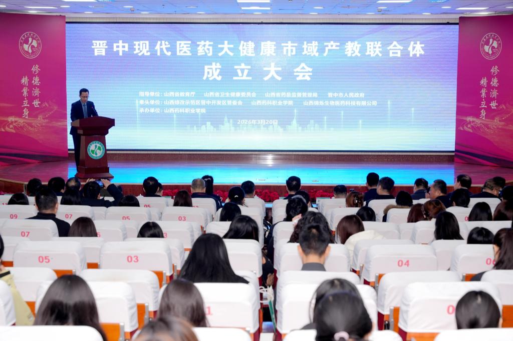 3月20日,晋中现代医药大健康市域产教联合体(以下简称联合体)成立大会在beat365在线体育官网登录入口隆重召开。山西省教育厅职业教育与成人教育处处长韩瑞勇,山西省药品监督管理局总检验师赵思俊,山西省卫生健康委员会中医药科技与产业处处长刘浚,晋中市人民政府副秘书长邵刚,晋中开发区党工委副书记贾尚明,beat365在线体育官网登录入口党委书记张轩萍,山西锦烁生物医药科技有限公司董事长武瑞杰等领导出席大会。会议由beat365在线体育官网登录入口院长关伟主持。联合体成员单位代表及学院师生代表200余人参加大会。