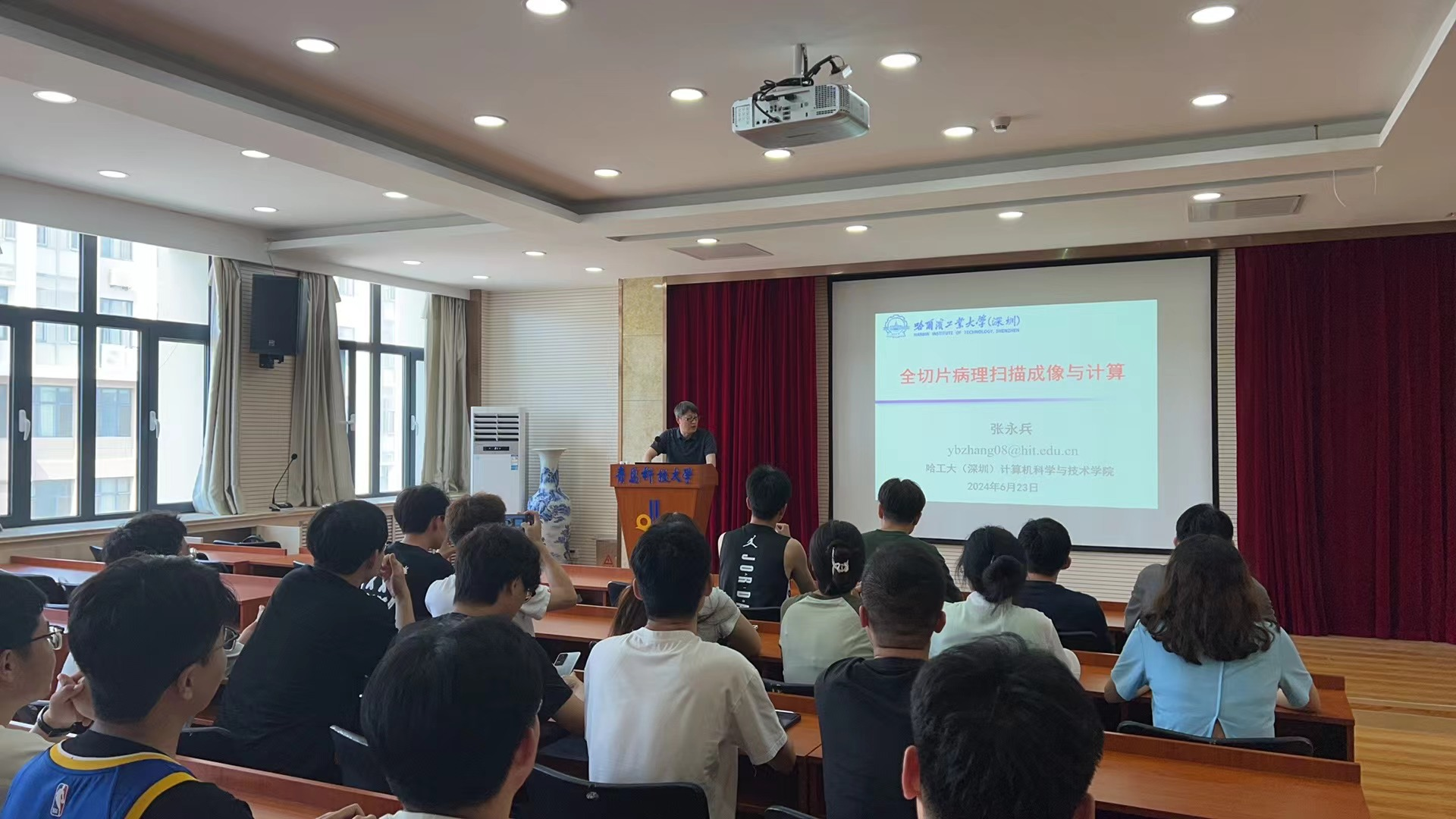 2024年7月19日,哈尔滨工业大学(深圳)计算机学院张永兵教授在D2-402为学院师生作题为“全切片病理扫描成像与计算”的学术报告,并就相关前沿问题进行了深入探讨。报告由学院副院长陶冶教授主持,学院30余名师生参加。