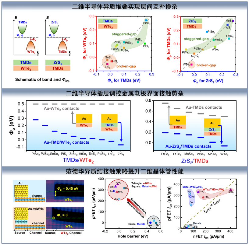 图1. 基于范德华异质结接触策略提升二维半导体载流子注入效率