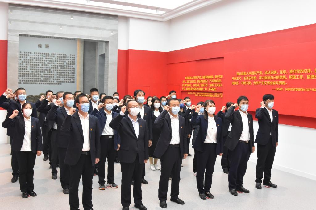 在讲解员的引导和生动讲解下,大家依次步入展厅,通过一幅幅图片、一件件实物、一个个案例、一句句警示,认真学习参观“时代扣问、初心如磬”“利剑高悬、知畏知止”“崇德修身、治本之道”等展区,体悟习近平总书记关于全面从严治党的重要论述,重温党的百年奋斗和自我革命历程,进一步感悟初心使命、坚定理想信念。