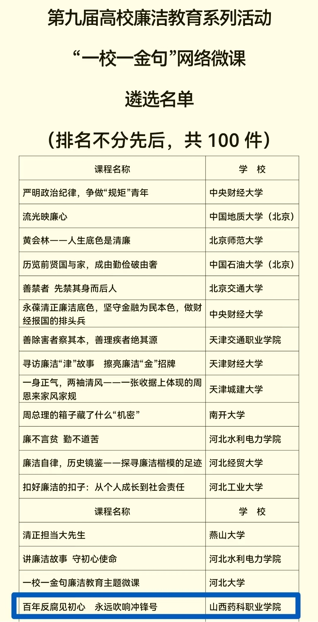 近日,由教育部思想政治工作司主办的“廉洁铸魂强根本 挺膺奋进建新功”——第九届高校廉洁教育系列活动评选结果公布,beat365官网选送的思政部教师陈琪主持的《百年反腐见初心永远吹响冲锋号》入选全国高校“一校一金句”网络微课遴选名单,成为全省荣获此奖项的唯一一所高职院校。