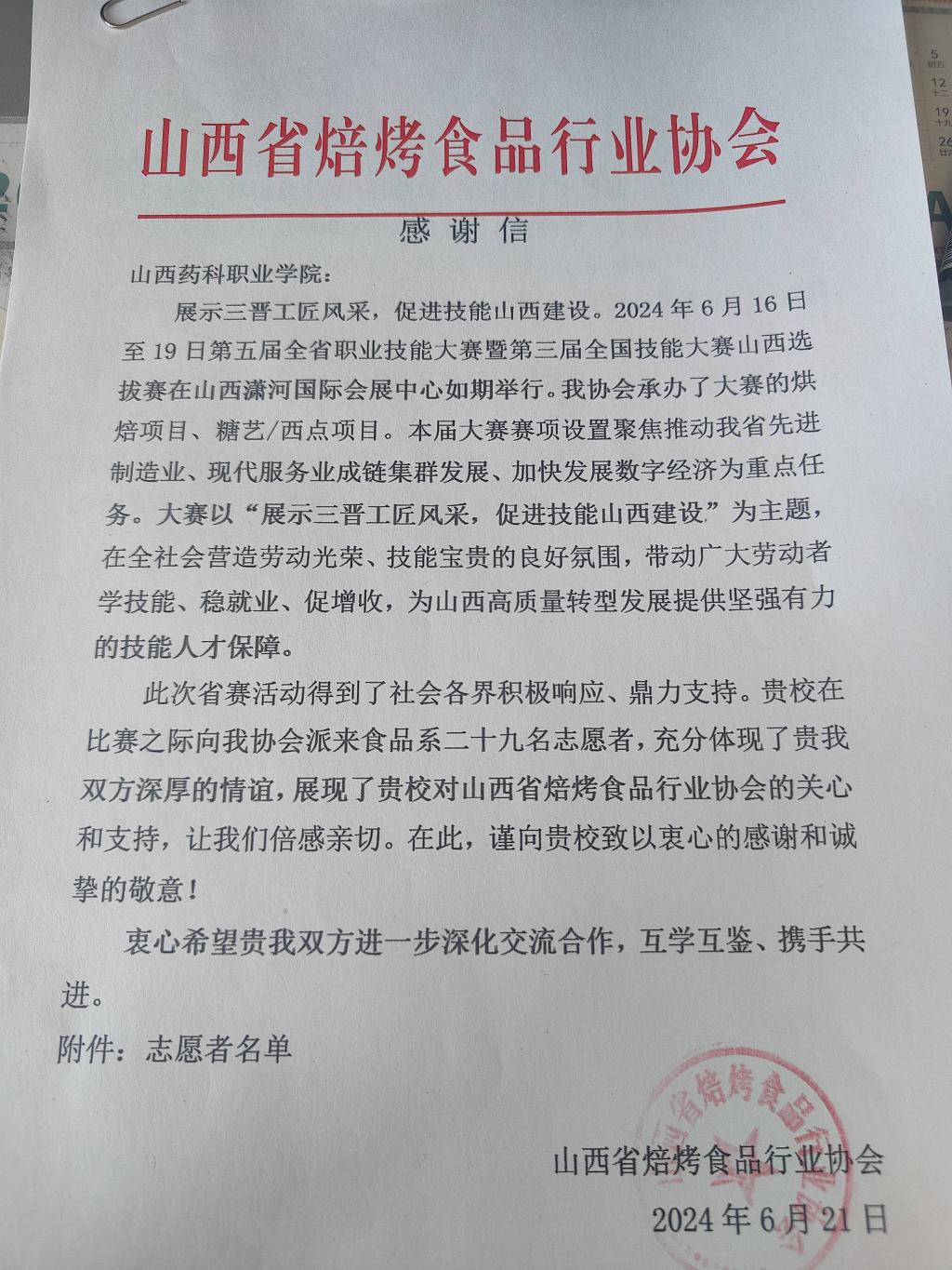 此次志愿者服务专业技能大赛活动,既体现了我系学生的志愿精神,又是我系与合作企业——山西省焙烤食品行业协会共同育人的一次实践,推动我系“食品类专业性志愿服务”省级文化育人品牌项目建设更趋成熟。