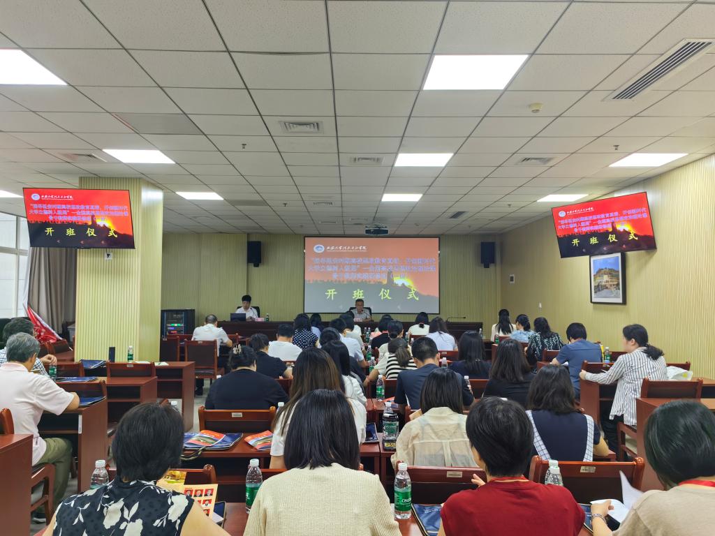 杜红荣首先致欢迎辞,对参加此次研修班的老师们表示热烈欢迎并简要介绍了延安大学及泽东干部学院的基本情况。他表示,延安是中国革命的圣地,是中国共产党的精神家园,希望学员能够以此次学习培训为契机,认真学习,传承、发扬好“延安精神”,坚定理想信念、凝聚奋进力量,使大家在对党的精神谱系有新体悟、深感悟,更好地把思政这门课讲深讲透讲活,守正创新推动思政课建设内涵式发展,不断提高思政课的针对性和吸引力。仪式上,杜红荣为学员代表授予班旗。