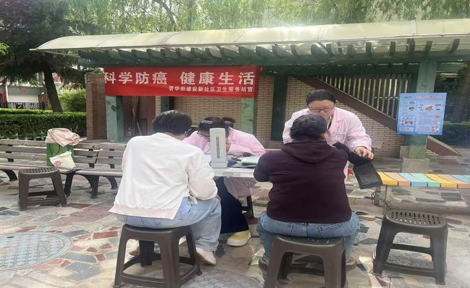 为了认真贯彻落实国家关于癌症防治工作的决策部署,切实增强公众防癌抗癌意识,结合学院关于做好2025年职业教育活动周暨全民终身学习活动周工作的通知要求,4月22日下午,beat365在线体育官网登录入口制药系杜建红、牛成丽、赵丽荣3位教师协同晋中街道安新社区卫生服务站在御璟城市花园1期小区里联合举办了“肿瘤、疟疾咨询宣传公益活动”。