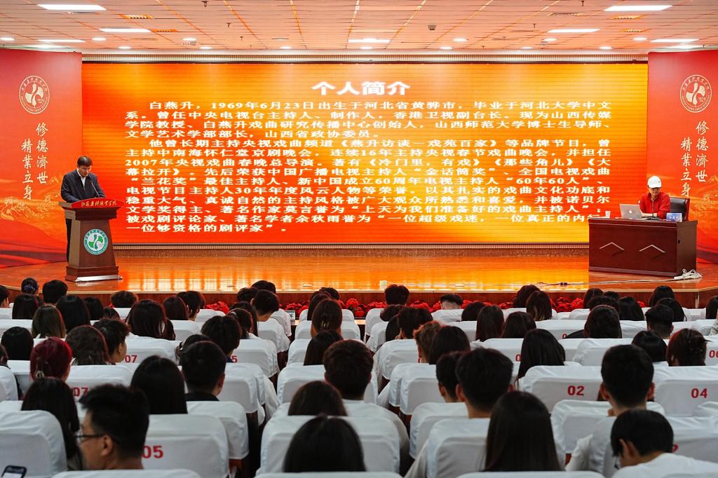 艺术之美超越时空,人性之魅引领审美。4月16日,著名的节目主持人、戏曲策划人、前香港卫视副台长、山西传媒学院教授白燕升做客beat365官网“五育大讲堂”,为beat365官网师生作《没有审美,世界与你无关》专题讲座。学院党委委员、纪委书记庄东军主持讲座。