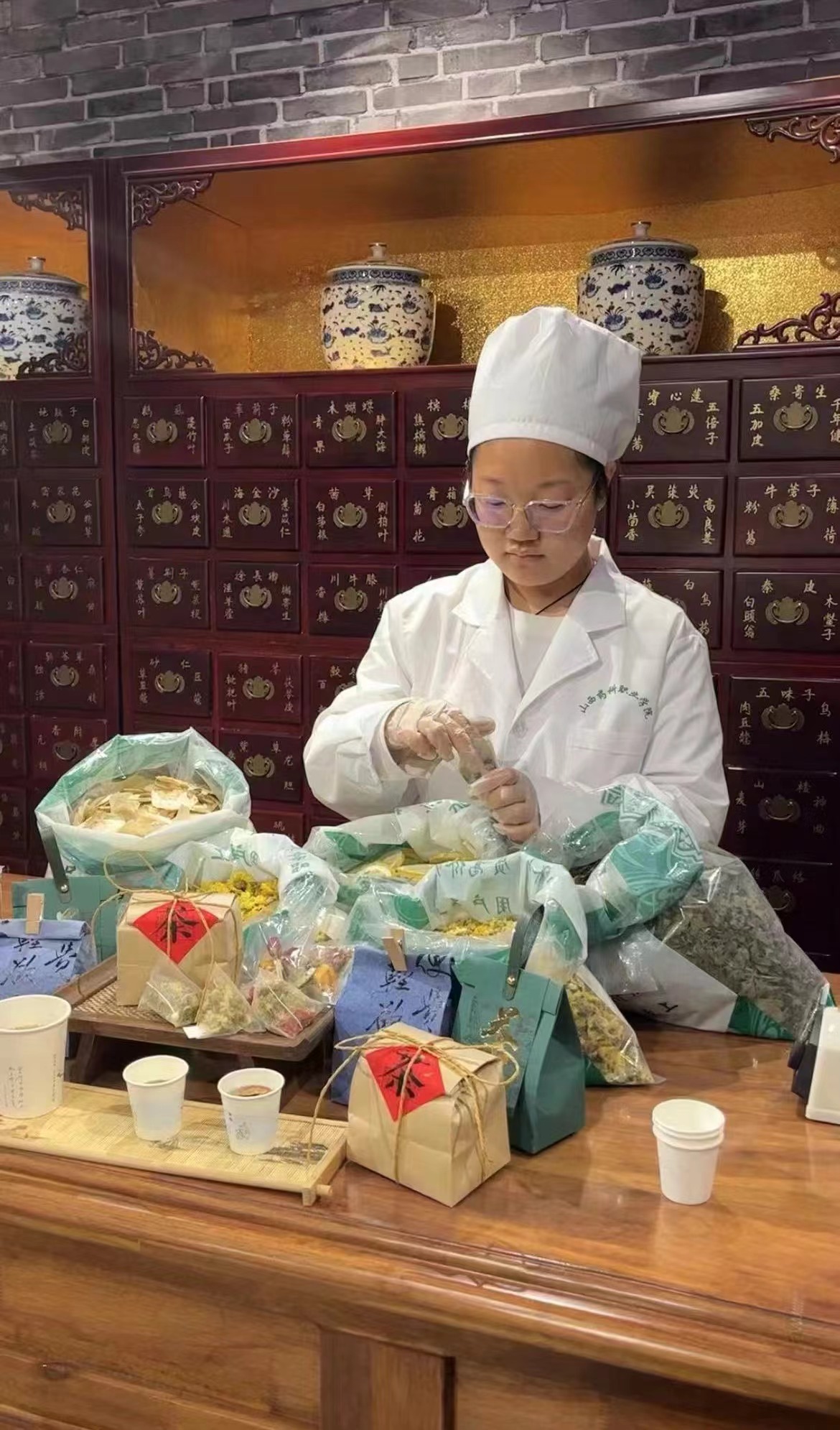 此外,学院展示了山西“十大晋药”、国家级非物质文化遗产中药传统制作技艺、中药文创产品,开放了中药标本馆、百草大药房、中药调剂技艺传承基地等中医药文化学习实践场所,并提供了中医义诊服务。