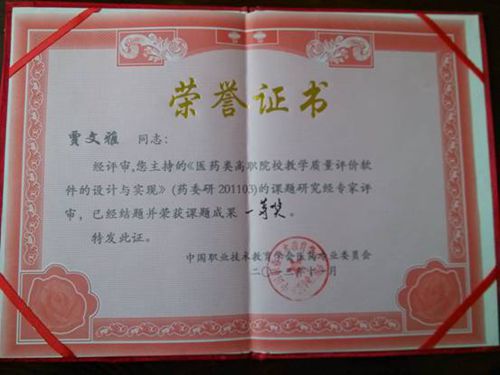 近日,在中国职业技术教育学会医药专业委员会课题评审中,beat365官网工商管理系教师贾文雅主持的《医药类高职院校教学质量评价软件的设计与实现》课题研究,荣获课题成果一等奖。2013-12-02 -