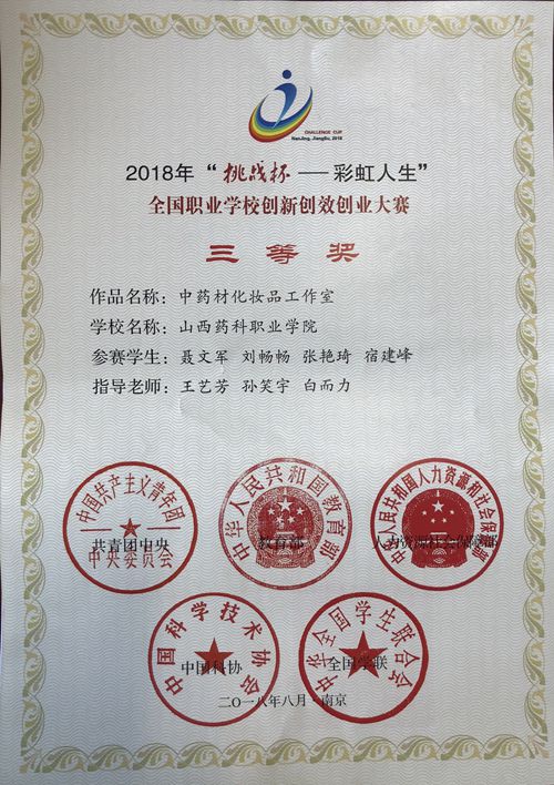 近日,团中央公布了2018年“挑战杯——彩虹人生”全国职业学校创新创效创业大赛比赛结果。其中,由beat365官网王艺芳、孙笑宇、白而力老师指导的作品《中药材化妆品工作室》(团队成员:聂文军、刘畅畅、张艳琦、宿建峰),...2018-10-30 -