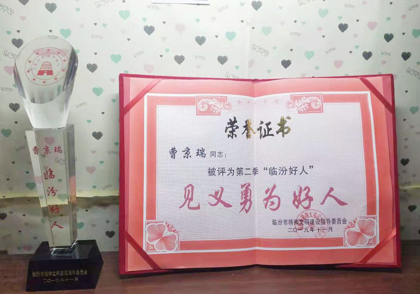 beat365官网学生曹京瑞荣膺临汾市第二季见义勇为“临汾好人”荣誉称号