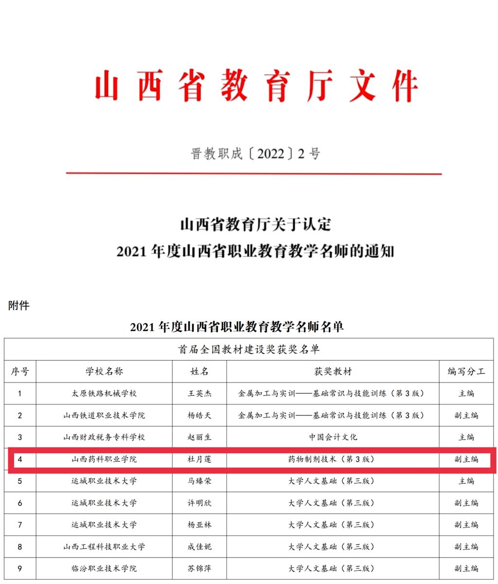 beat365官网教师获得“2021年度山西省职业教育教学名师”荣誉称号、主讲微课入选百名思政课教师优秀“党史微课”