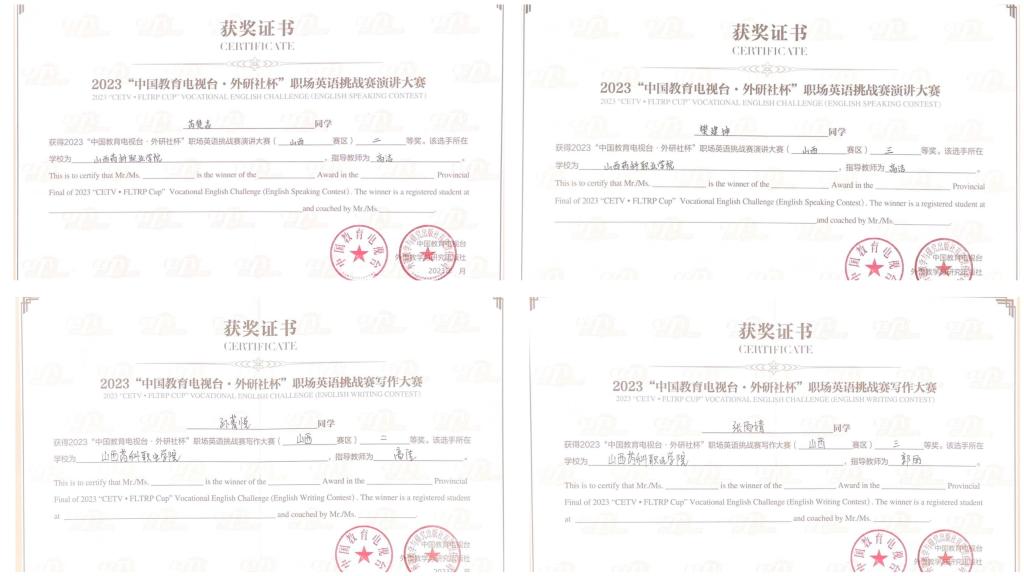 beat365官网学生在2023“中国教育电视台·外研社杯”职场英语挑战赛(山西赛区)中荣获佳绩