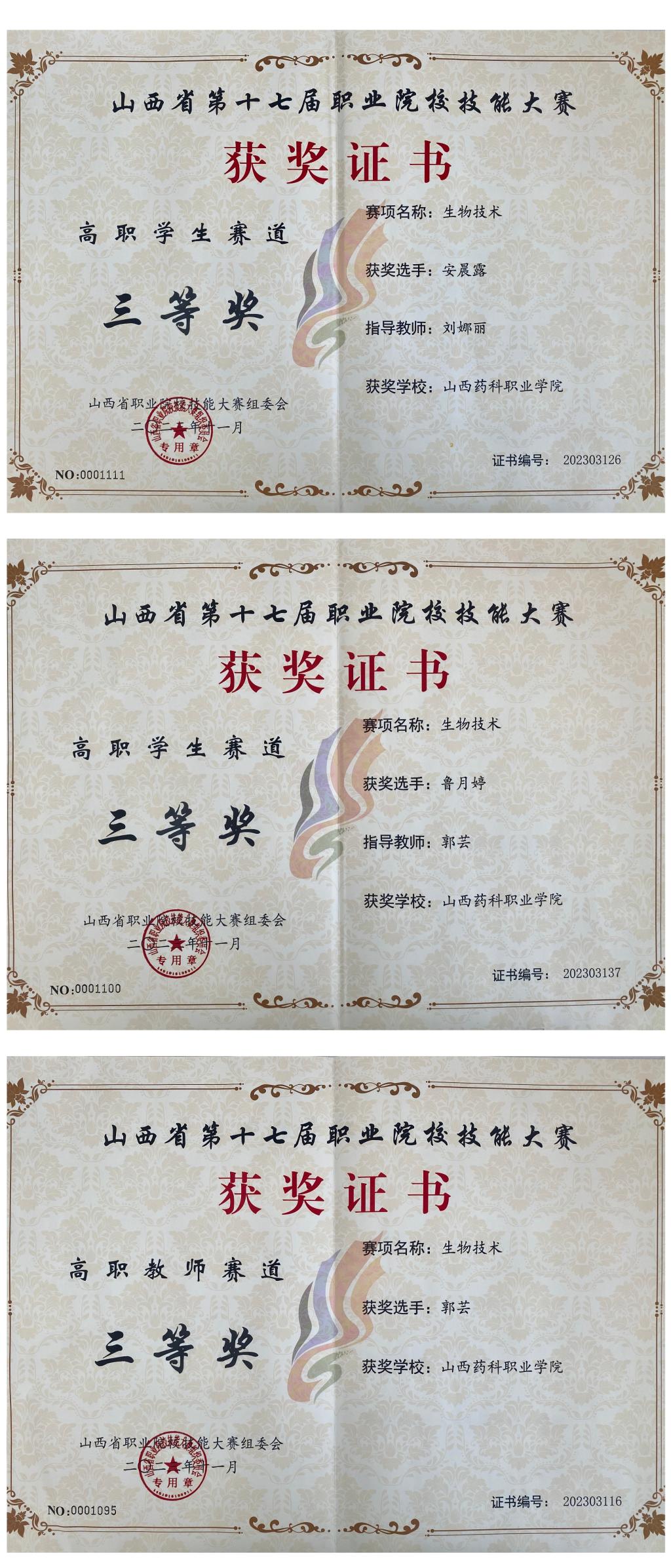 beat365官网师生在山西省第十七届职业院校技能大赛“华兴科软杯”生物技术赛项中荣获佳绩