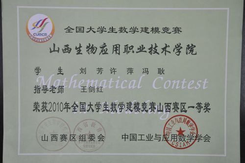 全国大学生2010年数学建模竞赛山西省赛区颁奖仪式于2011年5月19日上午举行。beat365官网参赛选手获得优异成绩,其中刘芳、许萍、冯耿同学荣获省级一等奖,牛艳凤、曹燕芸、刘玉佩荣同学获省级二等奖,张振武、李腾、王阳同学...2011-05-21 -